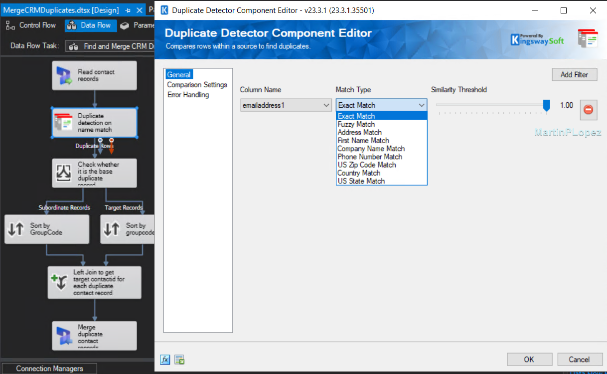 Use the ready-made KingswaySoft SSIS package to bulk-merge duplicates in Dataverse.