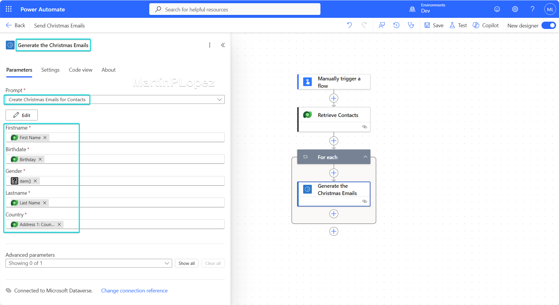With Power Automate and the AI Prompt connector, you can generate hundreds or thousands of highly personalized emails using Dataverse contact data - without building complex logic or templates.